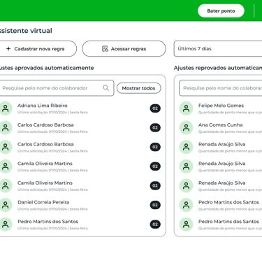 O Assistente Virtual faz parte do sistema de controle de ponto e foi criado para automatizar a aprovação de ajustes realizados pelos colaboradores.